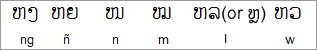 For more detailed information visit http://www.seasite.niu.edu/lao/lao3.htm. There are Lao language learning resources, exercises and MP3 to help you with prononciation.